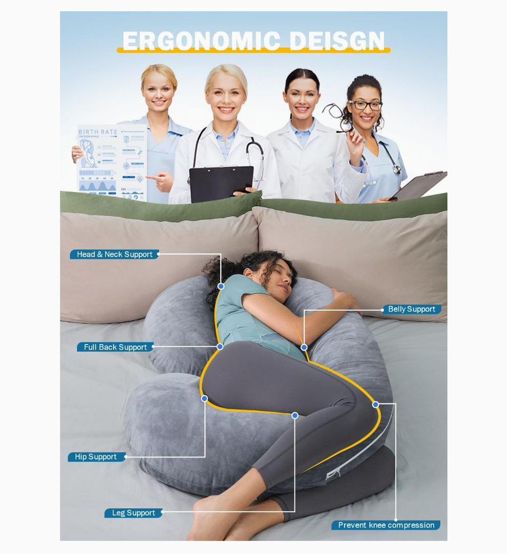 - Supports the neck, back, hips and stomach during pregnancy.
